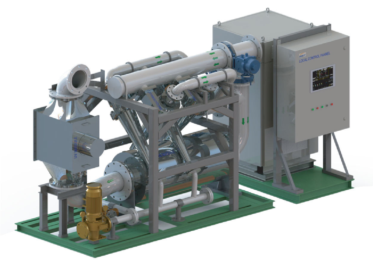 Ort he ship’s ballast water, this specific treatment object, BSKY expert designs enhanced physical technology (EPT) including hydrocyclone separation filter + ultrasonic wave pre-treatment + UV reactor disinfection, uses powerful function to rapidly treat ballast water, so as to complete the ballast and discharge during loading and unloading, the treated ballast water discharged following treatment completely meets the requirement of International Maritime Organization (IMO) and United States Coast Guard (USCG).